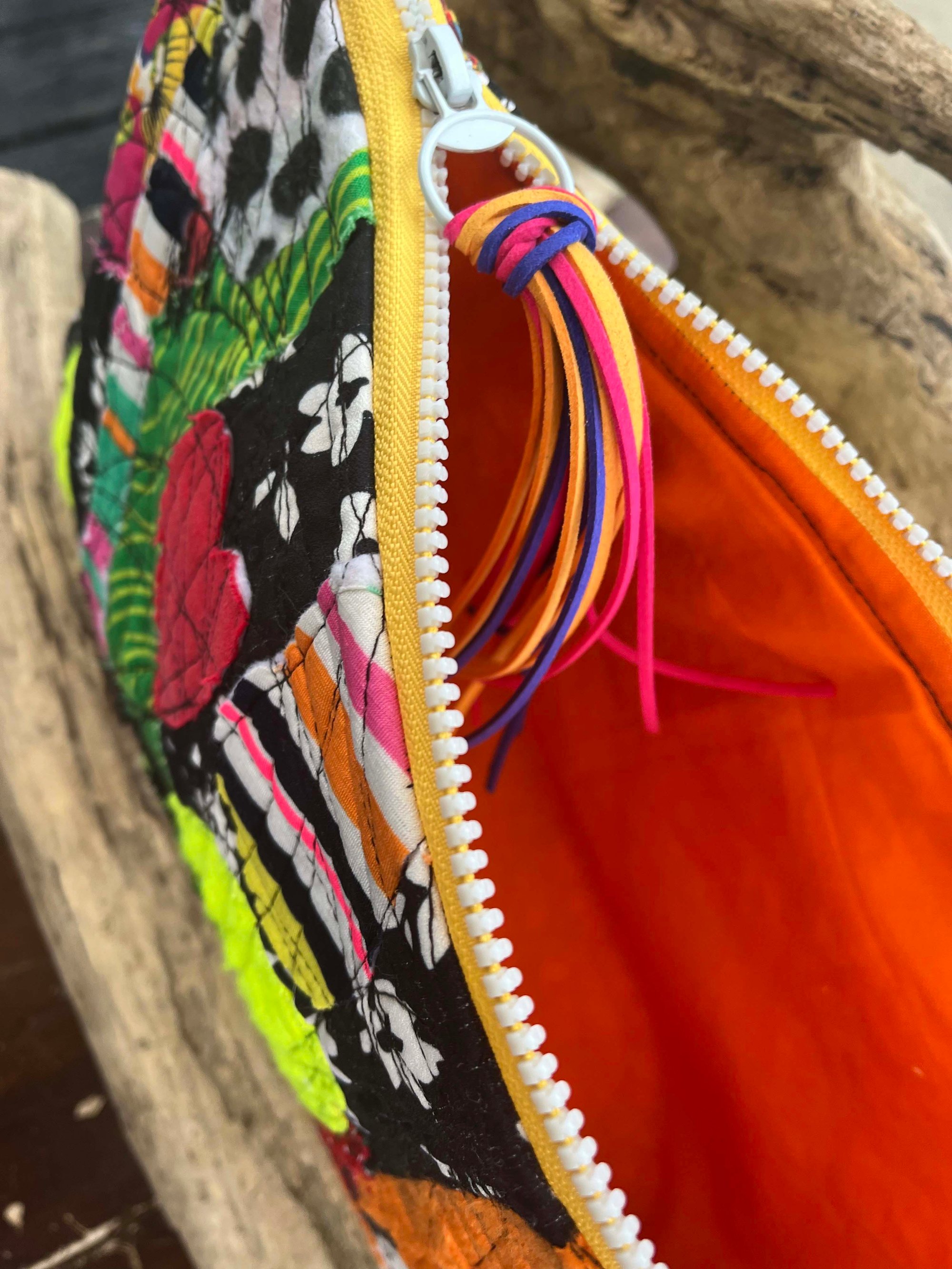 Where secrets travel... This oversized clutch blends vintage allure with modern craftsmanship, featuring rich fabrics and quilted textures. A mysterious, statement piece for those who wander beyond the ordinary.